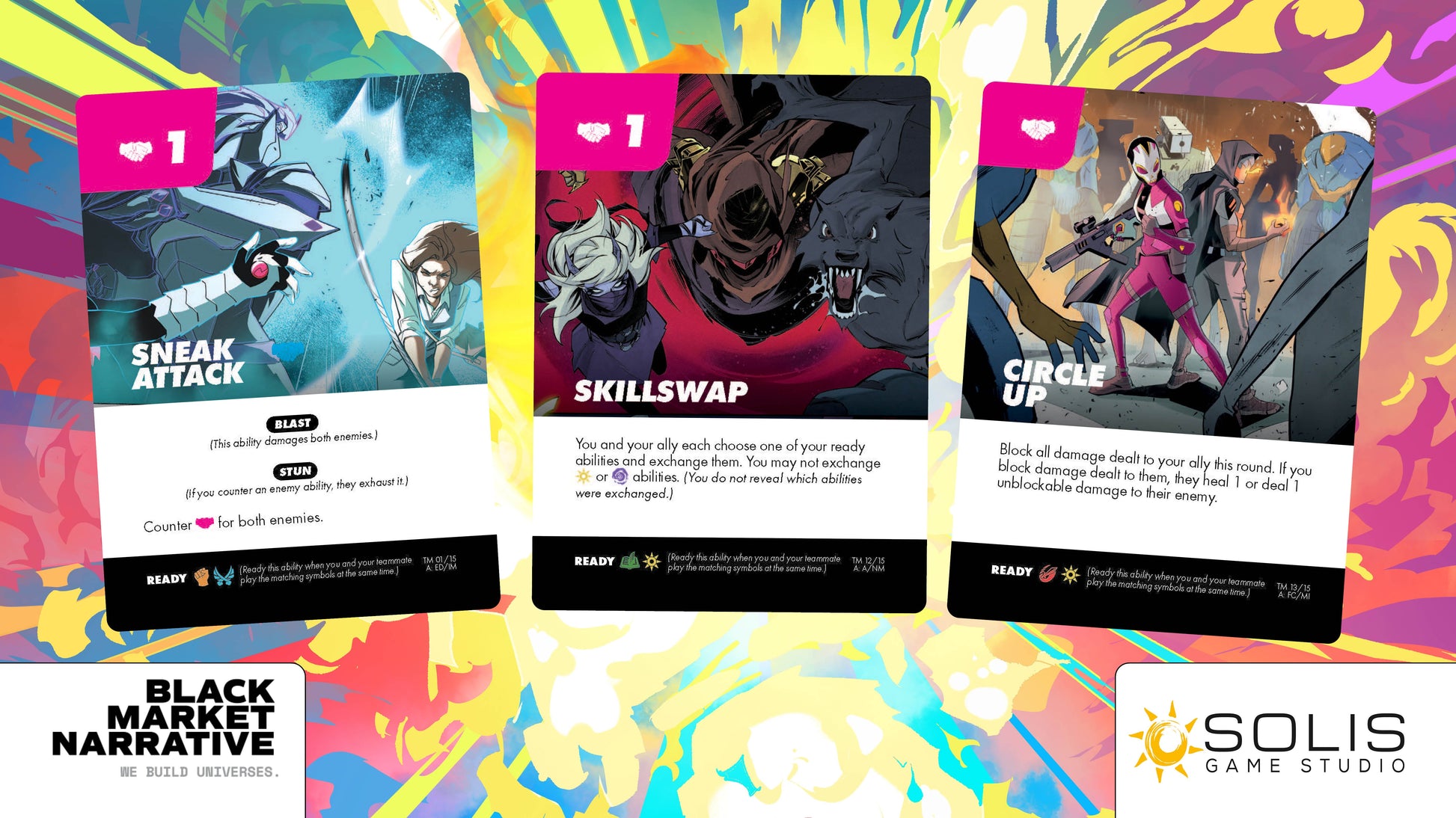 A lightning quick game of snappy strategy and big reads. Take their HP down to 0 or deliver a carefully placed Execute to take your opponent out in an instant! With this team up box, expand the Massive-Verse Fighting Card Game to intense 4 player action! Synergize with your ally to gain access to powerful team up abilities!
